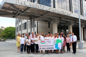 Las funcionarias ejecutivas y administrativas de la Sede Permanente del Parlamento Latinoamericano y Caribeño (PARLATINO) en Panamá, se sumaron a la campaña “8M Paro Internacional de Mujeres”, dejando de laborar una hora en el marco de la conmemoración del Día Internacional de la Mujer hoy 8 de marzo de 2017.