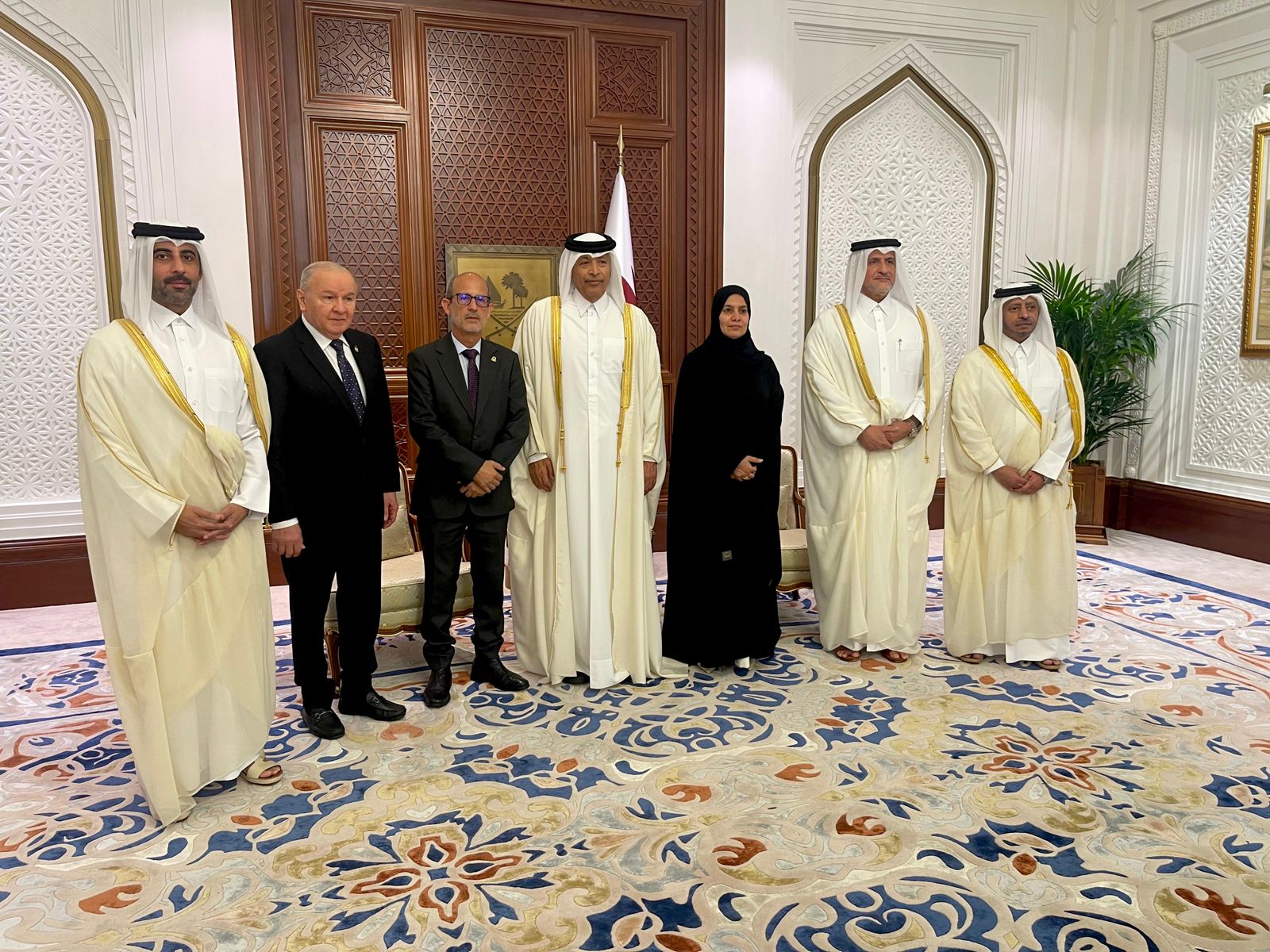 Doha, Catar, 5/11/2025. En el marco de la participación del Parlamento Latinoamericano y Caribeño (PARLATINO) en la Segunda Cumbre Mundial para el Desarrollo Social, celebrada del 4 al 6 de noviembre en Doha, Catar, el presidente del PARLATINO, diputado Rolando González Patricio, sostuvo un encuentro de alto nivel con el presidente del Consejo de la Shura de Catar, Hassan bin Abdullah Al-Ghanim, y la vicepresidenta del Consejo, Dra. Hamda bint Hassan Al-Sulaiti.